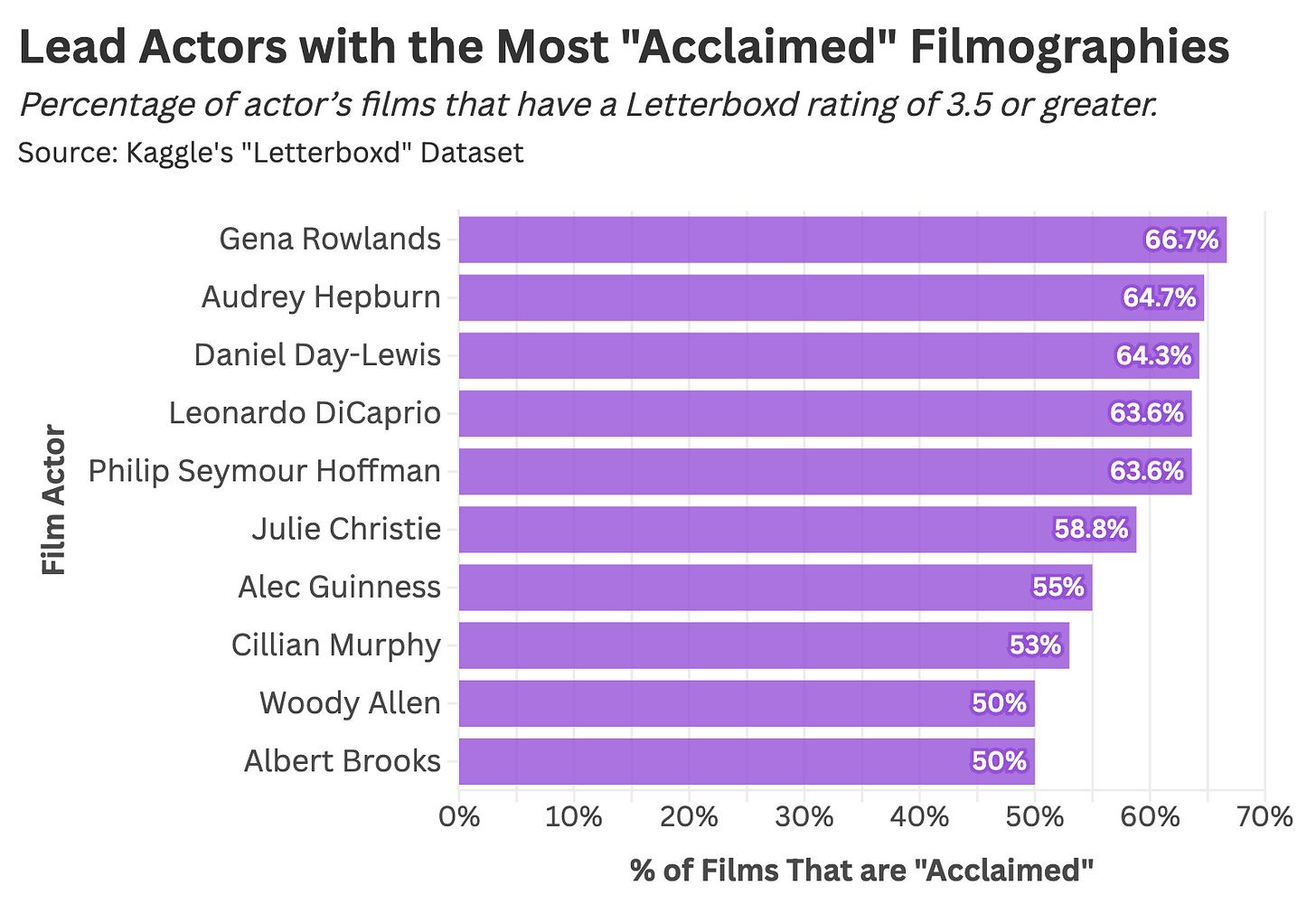 So today, we’ll explore film stardom as a statistical anomaly, unpack the challenge of balancing celebrity and quality, and assess the precarious nature of a career in the performing arts.